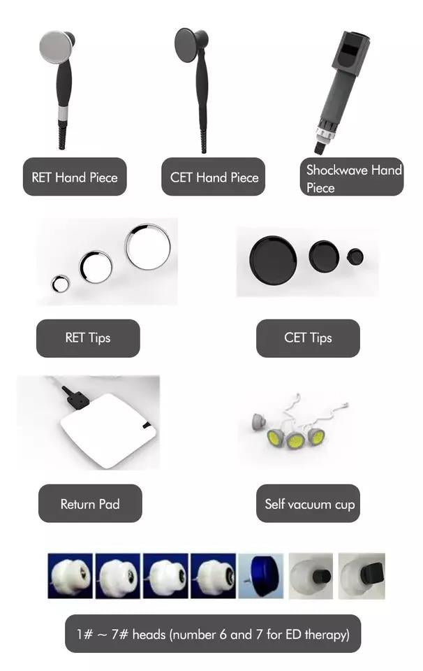 First, electrical stimulation can be used to relax and stimulate muscle and surface muscles, and then shock wave therapy can be used to hit tendons and deep muscles at a deeper level, and Tecar therapy with 448Khz and 300W can be used to repair the treatment site. You can adjust according to the actual treatment.